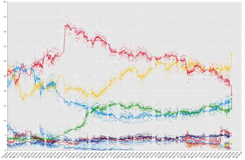 - "Elezioni politiche: vincono M5s e Lega. Crollo del Partito democratico. Centrodestra prima coalizione. Il Carroccio sorpassa Forza Italia". 4 March 2018.