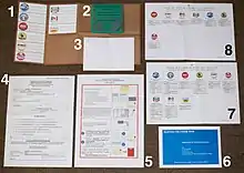 برگهٔ رأی در روشهای نخستنفری و نسبی یکتا است و نام نامزدهای حوزههای تکنماینده را مشخص کرده و در نزدیکی هر یک نماد فهرست بخش نسبی را نمایش داده است. در هر کدام نیز فهرست نام نامزدهای مربوطه آمده.[26]