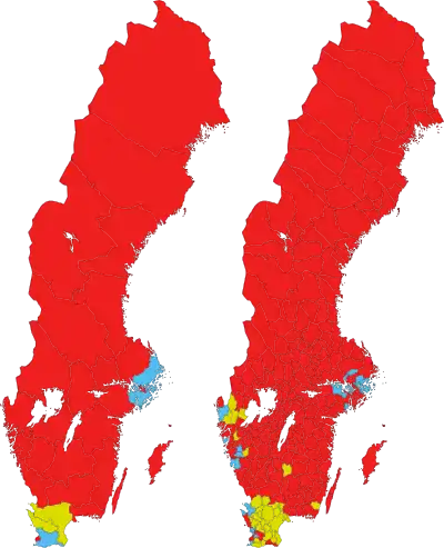 | S | حزب سوسیال دموکرات سوئد | سوسیال دموکراسی | استفان لوون | ۳۱٪ | ۱۱۳ از ۳۴۹ | |