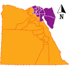 قاهره ، قلیوبیا ، داکالیا ، منوفیا ، غربیا ، کافر الشیخ ، شرقیه ، دامیتا ، بندر سعید ، اسماعیلیه ، سوئز ، سینای شمالی ، سینای جنوبی