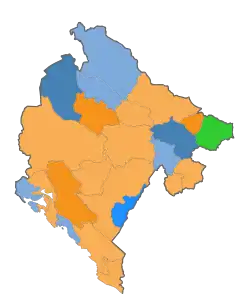 ![]() Results by each municipality; حزب دموکراتیک سوسیالیست مونتهنگرو ZBCG BS AL Saturation of colour denotes strength of vote | |||||||||||||||||||||||||||||||||||||||||||||||||||