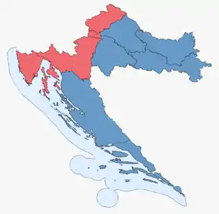 | نتایج انتخابات در هر یک از ده منطقهٔ انتخاباتی کرواسی HDZ (۶) SDP (۴) | |||||||||||||||||||||||||||||||||||||||||||||||||||||||||