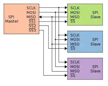 هنگامی که سازنده میخواهد دستگاه ارباب را به چند دستگاه از یک گذرگاه متصل کند در حالی که بتواند با هر یک به صورت مستقل و جداگانه تبادل داده کند، میتواند از خط انتخاب قطعه استفاده کند. انتخاب قطعه در خیلی از مدارهای مجتمع به صورت یک پین فرمان وجود دارد که باعث میشود پینهای ورودی/خروجی دستگاه از درون به مدار داخل دستگاه وصل شوند.