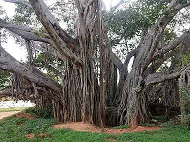 انجیر بنگالی درختی است عظیم که دارای شیرآبه کائوچوئی است. انجیر بنگالی ممکن است چند درخت به نظر آید زیرا تنههای بسیار دارد. این درخت ممکن است بیش از هزار تنه داشته باشد. انجیر بنگالی از گیاهان تیره انجیر و توت است؛ و در آسیای جنوبی و سایر سرزمینهای منطقه گرمسیری پیدا میشود. میوه این درخت قرمز است به مصرف خوراک پرندگان و میمونها و خفاشان میرسد.[3]