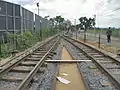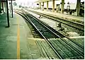 چند ریل مختلف، از سمت چپ ۱٬۴۳۵ میلیمتر (۴ فوت ۸ ۱⁄۲ اینچ), ۱٬۰۰۰ میلیمتر (۳ فوت ۳ ۳⁄۸ اینچ), و ۶۰۰ میلیمتر (۱ فوت ۱۱ ۵⁄۸ اینچ)