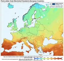 ![]() میزان در معرض آفتاب بودن کشورهای اروپایی |