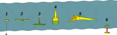 - دستگاههای متمرکزکننده موج: تراز متوسط آب دریا را در نقاط مشخص به روش سازههای قیفی شکل و به تله انداختن امواج بلند افزایش میدهند.[3]
