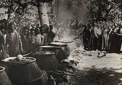در محوطه باغ سفارت انگلیس، هر صنف چادر مخصوص خود را برپا کرده بود و غذای معترضان به صورت متمرکز و مشترک پخت میشد. بیشتر هزینهها را گروهی از بازرگانان تهران از جمله محمدحسن امینالضرب، محمد معینالتجار بوشهری، محمداسماعیل آقاتبریزی و ارباب جمشید تأمین میکردند.[47]