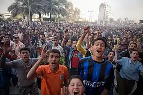 انقلاب ۲۰۱۱ مصر (به عربی: ثورة 25 يناير، انقلاب ۲۵ ژانویه) مجموعهای از راهپیماییها، اعتراضات و نافرمانیهای مدنی است که از ۲۵ ژانویه ۲۰۱۱ (۵ بهمن ۱۳۸۹) در کشور مصر آغاز شد و به استعفای حسنی مبارک در ۱۱ فوریه ۲۰۱۱ (۲۲ بهمن ۱۳۸۹) و ایجاد حکومتی نظامی در کشور منجر شد. این انقلاب با الهام از موفقیت انقلاب تونس صورت گرفت.[10] انقلابیون مصر، اهداف خود را انقلاب علیه شکنجه، فقر، فساد و بیکاری اعلام میکردند و خواهان سرنگونی حکومت حسنی مبارک، لغو قانون شرایط اضطراری، افزایش حداقل دستمزدها، پایان دادن به خشونتها و مهمتر از همه، روی کار آمدن یک حکومت مردمی بودند.[11]