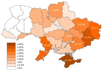 درصد اوکراینیهایی که معتقدند این کشور باید به روسیه بپیوندد. براساس نظرسنجی مؤسسه بینالمللی جامعهشناسی کیف در فوریه ۲۰۱۴