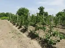 - روش اول که در ابتدی این موضوع نیز به آن اشاره شدهاست از طریق قلمه ای که به خزانه رفته و به مدت یک یا دو سال در خزانه نگهداری شده و پس از ریشه دار شدن قلمه در چالههای زمین اصلی که از قبل تهیه شدهاند کاشت میشود.