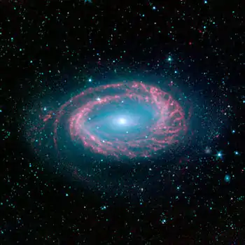 ![]() A فروسرخ image of NGC 4725 taken by the تلسکوپ فضایی اسپیتزر (SST). Credit: Spitzer Infrared Nearby Galaxies Survey/SST/ناسا. | |