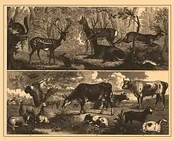 نقاشی از حیوانات وحشی (بالا) و اهلی (پایین)