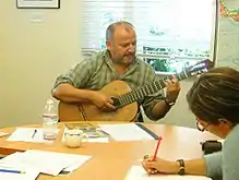 ![]() اوراثیو سالیناس در حال نواختن گیتار در دانشگاه کالیفرنیا، برکلی در سال ۲۰۰۵ میلادی | |