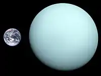اورانوس[10] (در اسطورههای یونان οὐρανός، خدای آسمان و برابر پارسی سرهٔ آن آهوره[11]) هفتمین سیاره از نظر نزدیکی به خورشید[12] و سومین سیاره از نظر اندازه و چهارمین سیاره از نظر جرم در منظومهٔ خورشیدی است. اورانوس هر ۸۴ سال و ۷ روز یکبار به دور خورشید میگردد. همچنین هر ۱۰ ساعت و ۴۸ دقیقه یک دور به دور خودش میچرخد. اورانوس دارای بیش از ۲۷ قمر است؛ بزرگترین آنها به نامهای میراندا، آریل، آمبریل، تیتانیا و ابرون است. این سیاره را ویلیام هرشل در سال ۱۷۸۱ میلادی کشف کرد.[13]