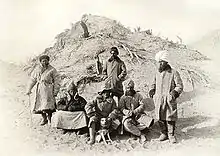 ![]() سر ارل اشتاین در کنار تیم باستانشناسیاش در حوزه تاریم | |