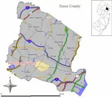 ![]() Map of South Orange Village in Essex County. Inset; Location of Essex County highlighted in the State of New Jersey. | |