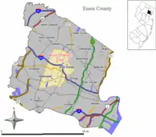 ![]() Map of West Orange Township in Essex County. Inset: Location of West Orange highlighted in the State of New Jersey. | |