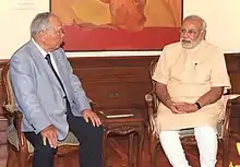 ![]() اوسامو سوزوکی (سمت چپ) همراهنارندرا مودی | |