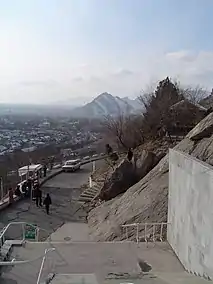 تخت سلیمان که مردم محلی آن را سلیمان-تو نیز مینامند به معنای تخت پادشاهی حضرت سلیمان است. یونسکو در سال ۲۰۰۹ این کوه که تقریباً ۲۰۰ متر ارتفاع دارد و دارای پنج قله است را در فهرست میراث جهانی ثبت کرد. بازدیدکنندگان ابتدا یک سازه ۷ در ۹ متری میبینند که گنبدی بر روی آن قرار دارد که قطر آن ۴٫۵ متر است. در داخل آن، یک ورودی دارای تورفتگی و بسیار مزین و یک فضای داخلی به شکل هشتوجهی با ارتفاع ۲ متر دیده میشود.[3]