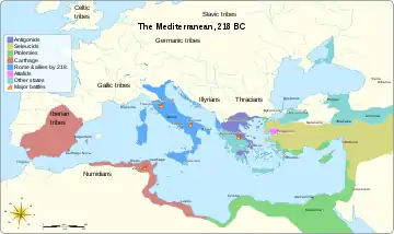 مدیترانه شرقی در سال ۲۱۸ پ.م (سال آغاز دومین جنگ کارتاژ)