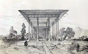 نمونههایی از نقاشیها و طراحیهای اوژن فلاندن از بناهای تاریخی ایران:
