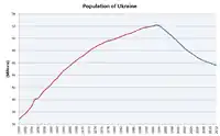 جمعیت این کشور بالغ بر ۴۳٫۷ میلیون نفر میباشد. با توجه به آن که بیشتر نواحی صنعتی در شرق و جنوب شرقی اوکراین واقع شدهاند، تراکم جمعیت در این نواحی بیشتر است، همچنین ۶۹٪ از جمعیت اوکراین نیز در مناطق شهری زندگی میکنند.[24]