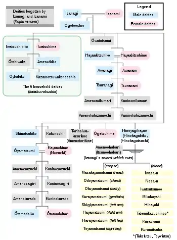 - کونی-نو-ساگیری (国 之 狭 霧 神)، خدای بیروح و بدون جنسیت