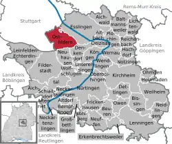 موقعیت اویتفیلدن در منطقه Esslingen ![]() | |
