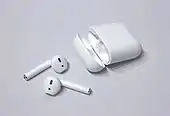 اَپِل ایِربادز هدفون درونگوشی سپیدرنگ ساخت شرکت اپل است که در جعبه محصولاتی مثل آیپاد یا آیپاد تاچ به مشتریان این شرکت عرضه میشود. این هدفونها که به عقیده برخی «انقلابی» در زمینه فناوریهای صوتی محسوب میشوند،[1][2] از نظر زیبایی نیز مورد تحسین قرار دارند.