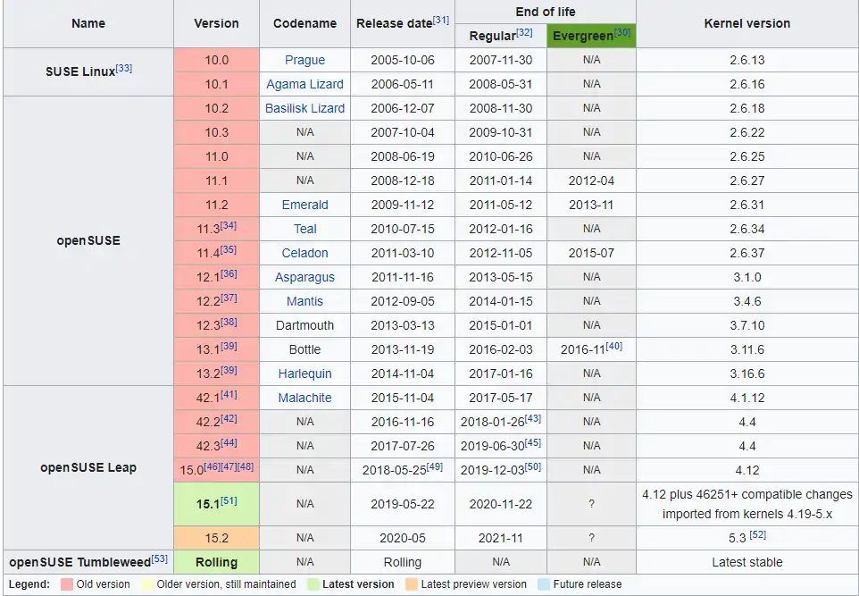 - «Portal:Distribution - openSUSE Wiki». en.opensuse.org. دریافتشده در ۲۰۲۰-۰۴-۱۴.
