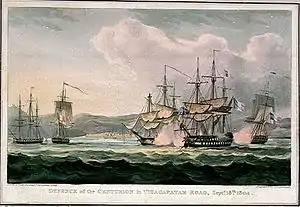 - مشارکتکنندگان ویکیپدیا. «HMS Centurion (1774)». در دانشنامهٔ ویکیپدیای انگلیسی، بازبینیشده در ۲۴ دسامبر ۲۰۱۳.