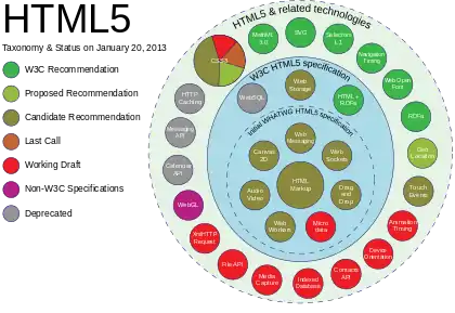 | HTML 5.0 | نامزد ضبط | فراخوان برای تجدید | توصیه | ||