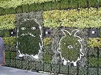 نقش موریزو و کیکورو، شگوننماهای اکسپو ۲۰۰۵ٔ بر روی دیوار گل.