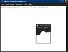 تصویری از اکسلود که توسط گنوم ترمینال اجرا شده است. برنامه توسط دستور xload -highlight blue -update 1 & اجرا شده است