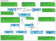 یک UML Component Diagram برای Xdebug و PHP که از طریق مرورگر و یک IDE یکپارچه شدهاند.