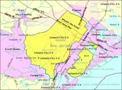 ![]() Map of Egg Harbor Township in Atlantic County. Inset: Location of Atlantic County highlighted in the State of New Jersey. | |