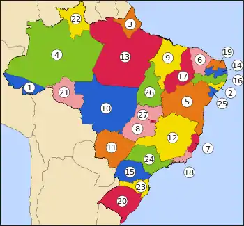 - مشارکتکنندگان ویکیپدیا. «States of Brazil». در دانشنامهٔ ویکیپدیای انگلیسی، بازبینیشده در ۳۱ می۲۰۱۱.