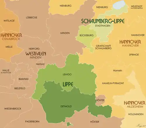 - مشارکتکنندگان ویکیپدیا. «Free State of Lippe». در دانشنامهٔ ویکیپدیای انگلیسی، بازبینیشده در ۵ اکتبر ۲۰۱۷.