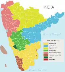 ![]() Map of جنوب هند before the States Reorganisation Act of 1956 with Madras State in yellow | |||||||||