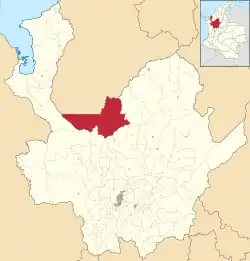 ![]() Location of the municipality and town of Ituango in the Antioquia Department of Colombia | |