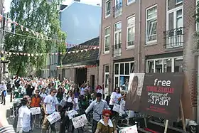 در پی اعتراضات گسترده در ایران در تابستان ۲۰۰۹، در هلند، شهرهای آمستردام، خرونینگن، دلفت، روتردام و لاهه شاهد تظاهرات اعتراضی ایرانیان مهاجر و دانشجویان بودهاند. در ژوئیه ۲۰۰۹ یکی از بزرگترین تظاهرات ایرانیان هلند در آمستردام در اعتراض به خشونتها در ایران با سخنرانی شیرین عبادی برگزار شد.[12]