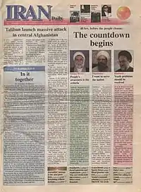 صفحه نخست روزنامه ایران دیلی از اولین شماره این روزنامه در تاریخ ۳۱ اردیبهشت ماه ۱۳۷۶