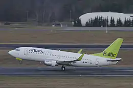 بوئینگ ۷۳۷ هواپیمایی ایربالتیک، در حال برخاستن از باند فرودگاه برلین تگل