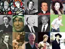 3rd row: جیمز جویس • ایمون دو والرا • مایکل کولینز (رهبر ایرلندی) • مورین اوهارا • جرج بست • مری مکآلیس • لیام نیسون