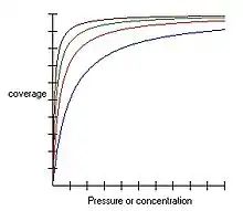 که در آن ثابت تعادل جذب X، کسر پوششی جزء X و فشار جزئی گونهٔ X است.