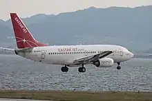 یک فروند بوئینگ ۷۳۷ نسل بعدی ایستار جت در حال فرود بر فرودگاه بینالمللی کانزای، اوساکا، ژاپن (۲۰۱۲)