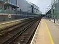 Platform roundel, based on the famous symbol of London Transport, but with Overground orange circle