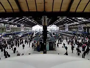 این ایستگاه که در سال ۱۸۴۹ تأسیس شده سالانه حدود ۹۰٬۰۰۰٬۰۰۰ مسافر را جابهجا میکند که سومین ایستگاه شلوغ فرانسه و یکی از شلوغترین ایستگاههای اروپا محسوب میشود.
