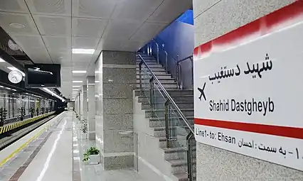 - مشارکتکنندگان ویکیپدیا. «Shahid Dastgheyb Metro Station». در دانشنامهٔ ویکیپدیای انگلیسی، بازبینیشده در ۳۰ سپتامبر ۲۰۱۷.